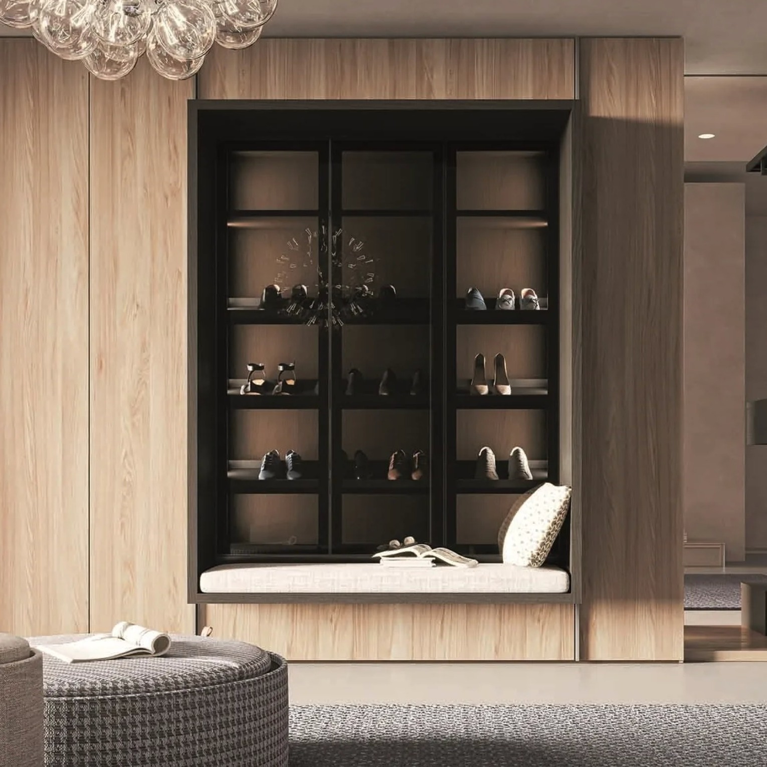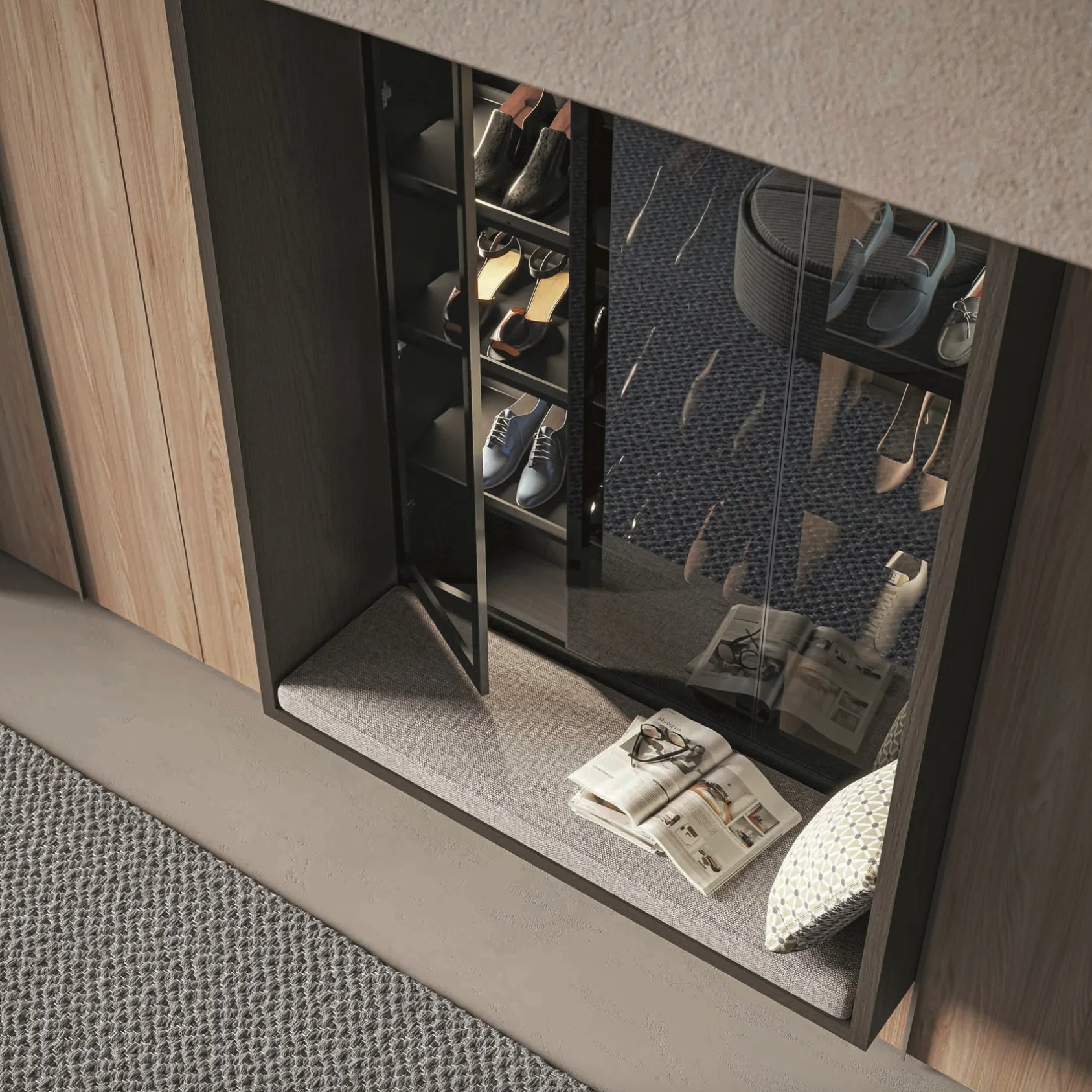 Alcova System ripercorre la sottile linea che divide il giorno dalla notte, la cosiddetta Ora Blu, in un’unica soluzione di arredo, è possibile trasformare la stanza da nicchia contenente una seduta o una panca d’appoggio ideale per spazi ridotti o per creare un piccolo divano dove lo spazio non c’era, per poi trasformarsi in letto comodo e confortevole.