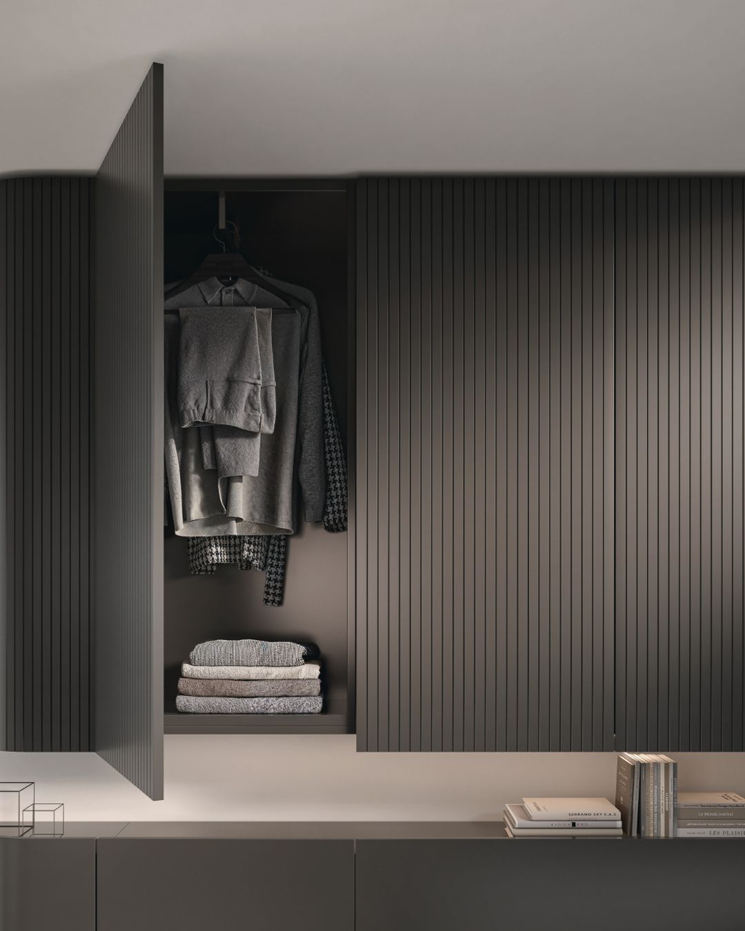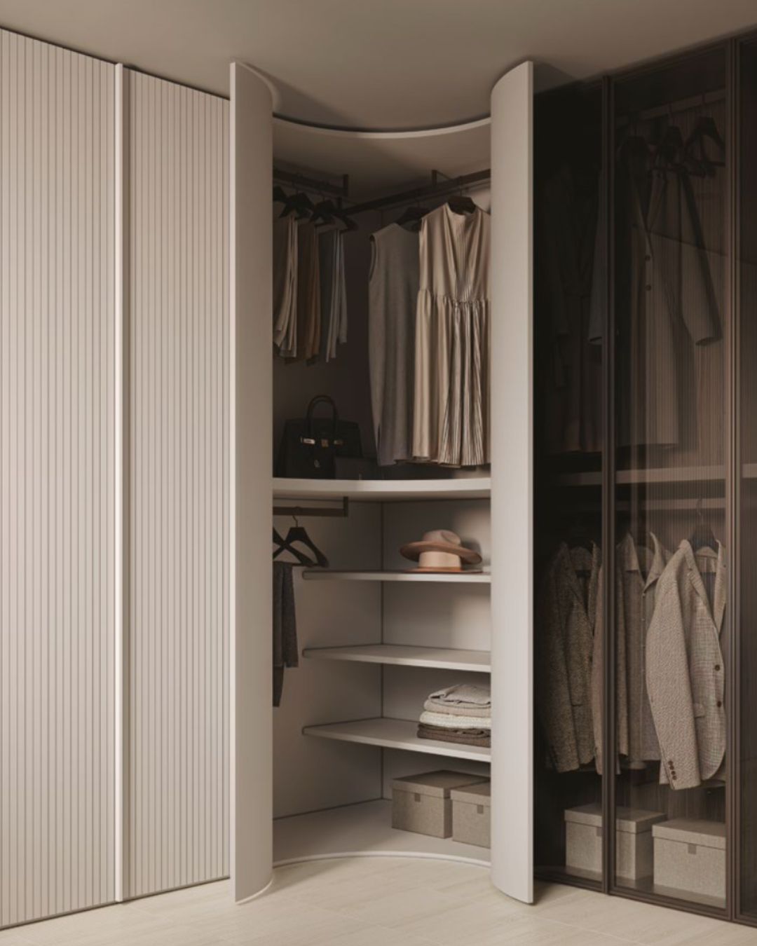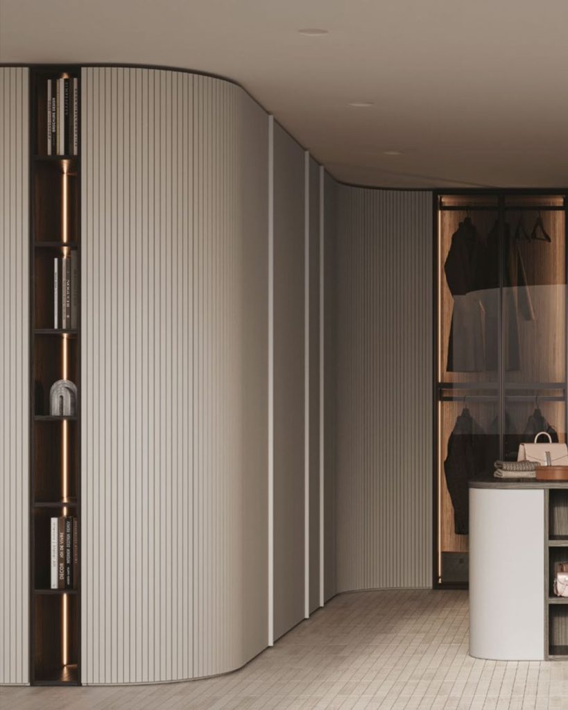 L’Elemento Circle trasforma l’angolo in un punto focale, avvolgendo l’ambiente con volumi pieni e superfici continue. L’apertura laterale cela nicchie e librerie, suggerendo un’idea di contenimento discreto ma di forte impatto visivo. Disponibile in diverse finiture, integra estetica e funzionalità.