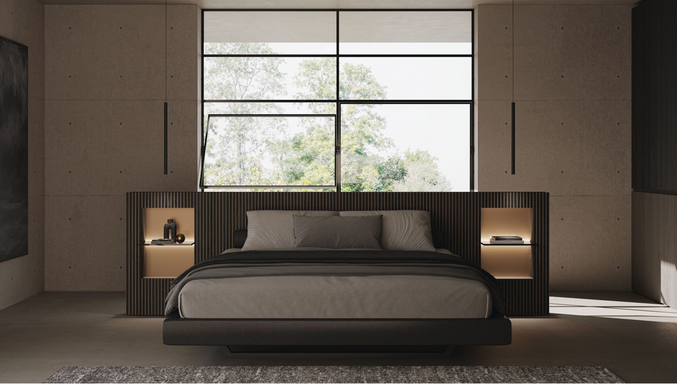 Grazie alla sua componibilità, il sistema letto Plan, risolve con uno stile originale una molteplicità di situazioni, in ambiti contract o domestici.Il giroletto può essere imbottito o in legno, anche con piede centrale in metallo che insieme all’illuminazione a Led, inserita nelle mensole in vetro, crea una sensazione di magica leggerezza., è caratterizzato da una rigorosa geometria che si coniuga perfettamente con la funzionalità ed eleganza dei suo elementi laterali in nicchia.